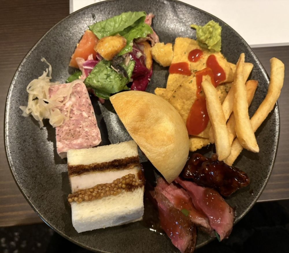 機内食は炭水化物3連星(米、麺、パン)でお腹いっぱいになりました!