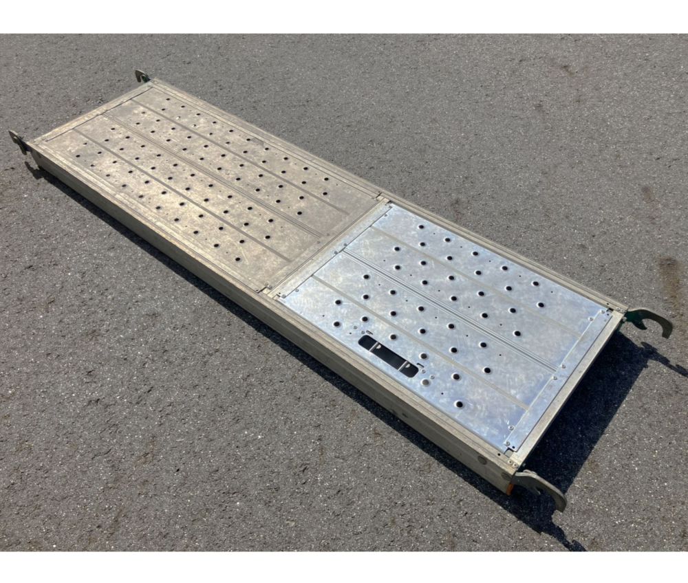 ③付属梯子の足下は作業床の上に置くように設置し、枠組足場最下段で宙吊りにした状態で使用しないでください。