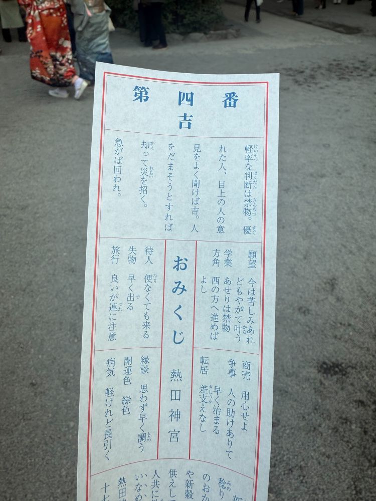 おみくじを引いたところ、今年の運勢はなんと絶妙な吉!