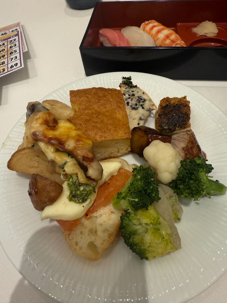 機内食は炭水化物3連星(米、麺、パン)でお腹いっぱいになりました!